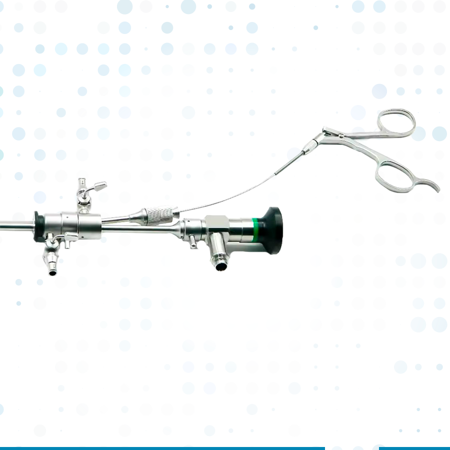• Con 4 mm  de diámetro al encontrarse totalmente ensamblado como se ve en la imagen, excelente para la realización de histeroscopias diagnósticas de consultorio, o quirúrgicas, al contar con una pinza histeroscópica de agarre y una tijera histeroscópica de 4 fr de calibre.